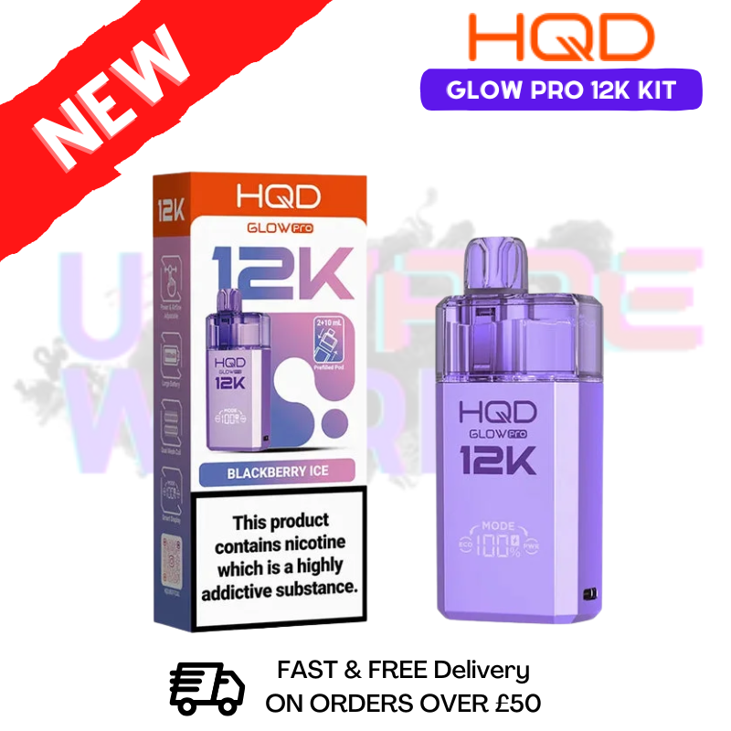 Shop Blackberry Ice HQD Glow Pro 12K Puff Prefilled Pod Kit deep, rich blackberry sweetness paired with a crisp icy chill, creating a bold berry flavour with refreshing cool contrast.