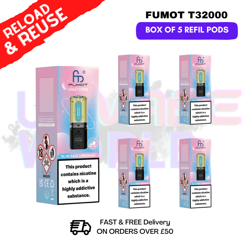 Fumot’s Premium Replacement Pods are specifically crafted for the Fumot T32000 Prefilled Pod Kit, offering up to 32,000 puffs of reliable, high-quality vapor at unbeatable prices in the UK.