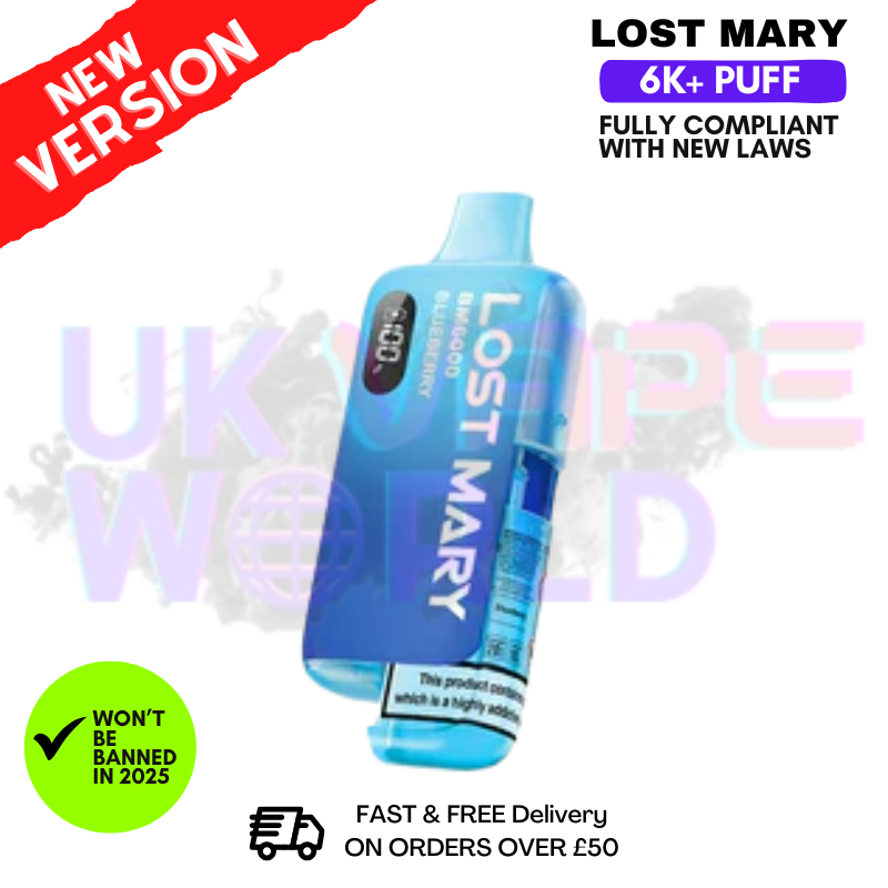 Blueberry Lost Mary 6K Puff Pod Kit - Only £8.99 Sweet, juicy forest fruit flavour with smooth undertones, delivering a mellow and fruity vape experience. Perfect addition to the Lost Mary Bm6000 Prefilled Pod Kit Range!