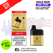 Shop Cherry Fizz Gold Bar Apollo 20K Prefilled Pod Kit effervescent blend of bold red fruit and sparkling candy notes, delivering a sweet, tangy vape with a fizzy twist that tickles the taste buds and leaves a zesty finish. A Perfect addition to the GOLD BAR 20K Range!