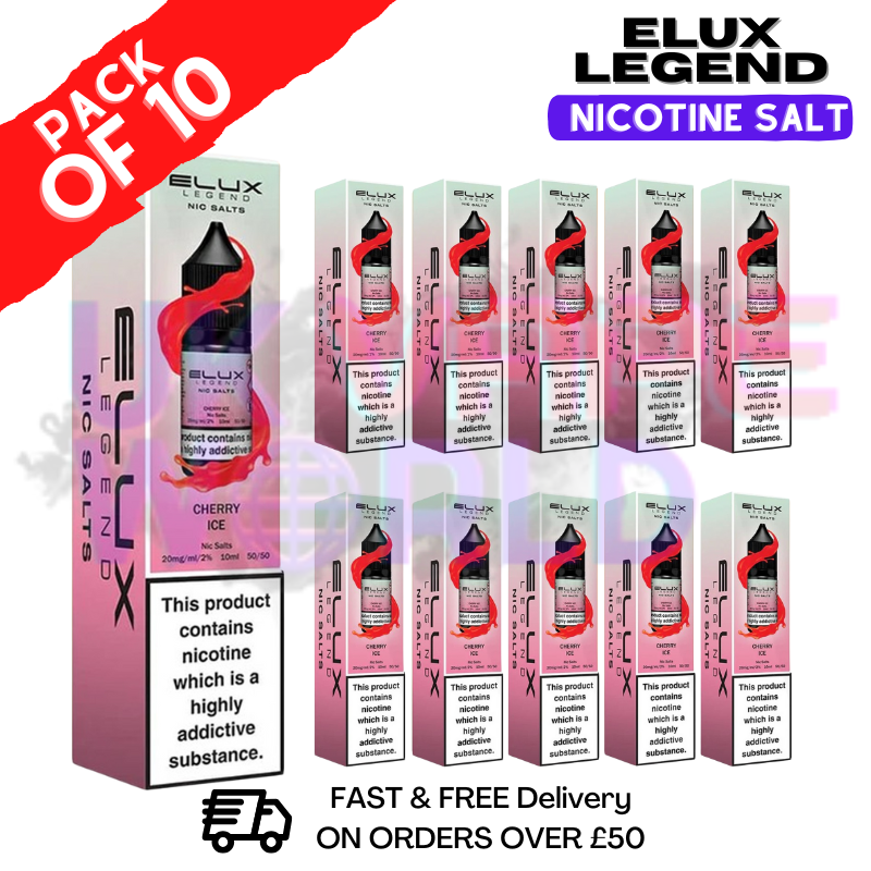 Cherry ICE Elux Legend Nic Salt BOX OF 10 is sweet cherry essence embraced by an icy chill, a delightful combination of fruity sweetness and cool freshness in every puff.. A perfect addition to the Elux NicSalt Range!