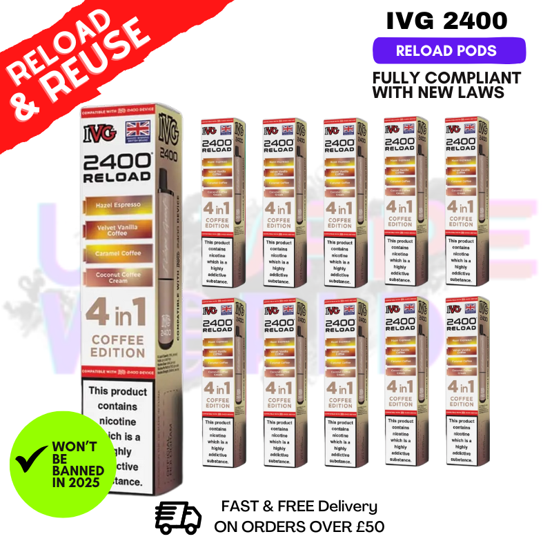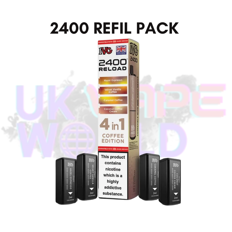 Shop Coffee Edition IVG 2400 RELOAD Pods - Box Of 10 - Replacement Pods compatible with the IVG 2400 Puff Vape Kit - Simply replace, recharge and reuse the IVG 2400 DEVICE