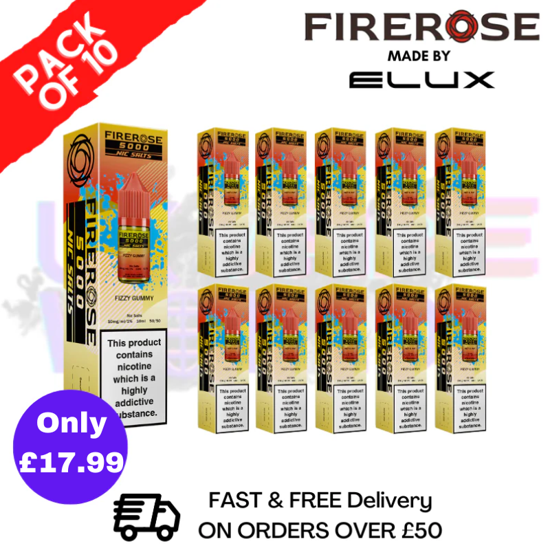 Fizzy Gummy Firerose 5000 Nic Salt Box Of 10