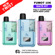 Shop Fumot Mate 10000 Puff 10K Prefilled Pod Kit huge puff capacity, and bold flavour in one sleek device. With up to 10,000 puffs per kit, it’s perfect for those tired of constantly swapping disposables or refilling tanks.