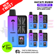 Pack of five Hayati Rubik 7k Blueberry Raspberry is a combines the sweet richness of blueberries with the tangy zest of raspberries, creating a perfectly balanced and refreshing fruity flavor. Perfect addition to the Hayati Rubik Range!