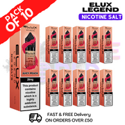 Juicy Peach Elux Legend Nic Salt BOX OF 10 is a exudes a luscious sweetness, capturing the ripe, succulent essence of fresh peaches with a smooth and velvety finish. A perfect addition to the Elux NicSalt Range!