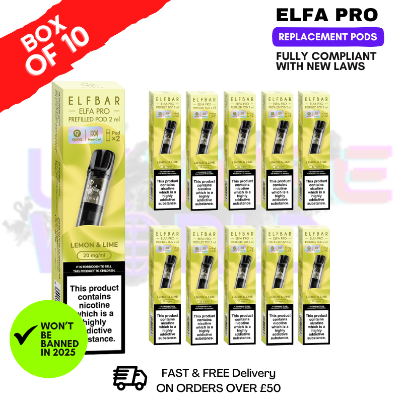 Shop Lemon Lime Elf Bar Elfa Pro Prefilled Pod Box Of 10 is a crisp citrus fusion with sharp zest and subtle sweetness, delivering a refreshing vape that balances tangy brightness with a fizzy twist for an energising, all-day flavour experience. A perfect addition to the ELF Bar Elfa Pro Pods Range!